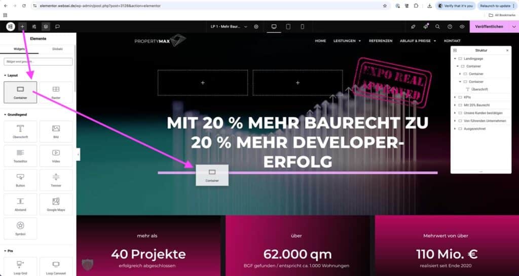 Elementor setzt seit einiger Zeit auf das sogenannte Flexbox-Container-System. Im Vergleich zum alten Spalten-Layout bietet es deutlich mehr Flexibilität. Vor allem, wenn es um die präzise Ausrichtung von Elementen wie Buttons geht.